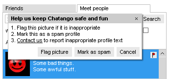 You can also report spam or inappropriate private messages to Chatango. Click on the